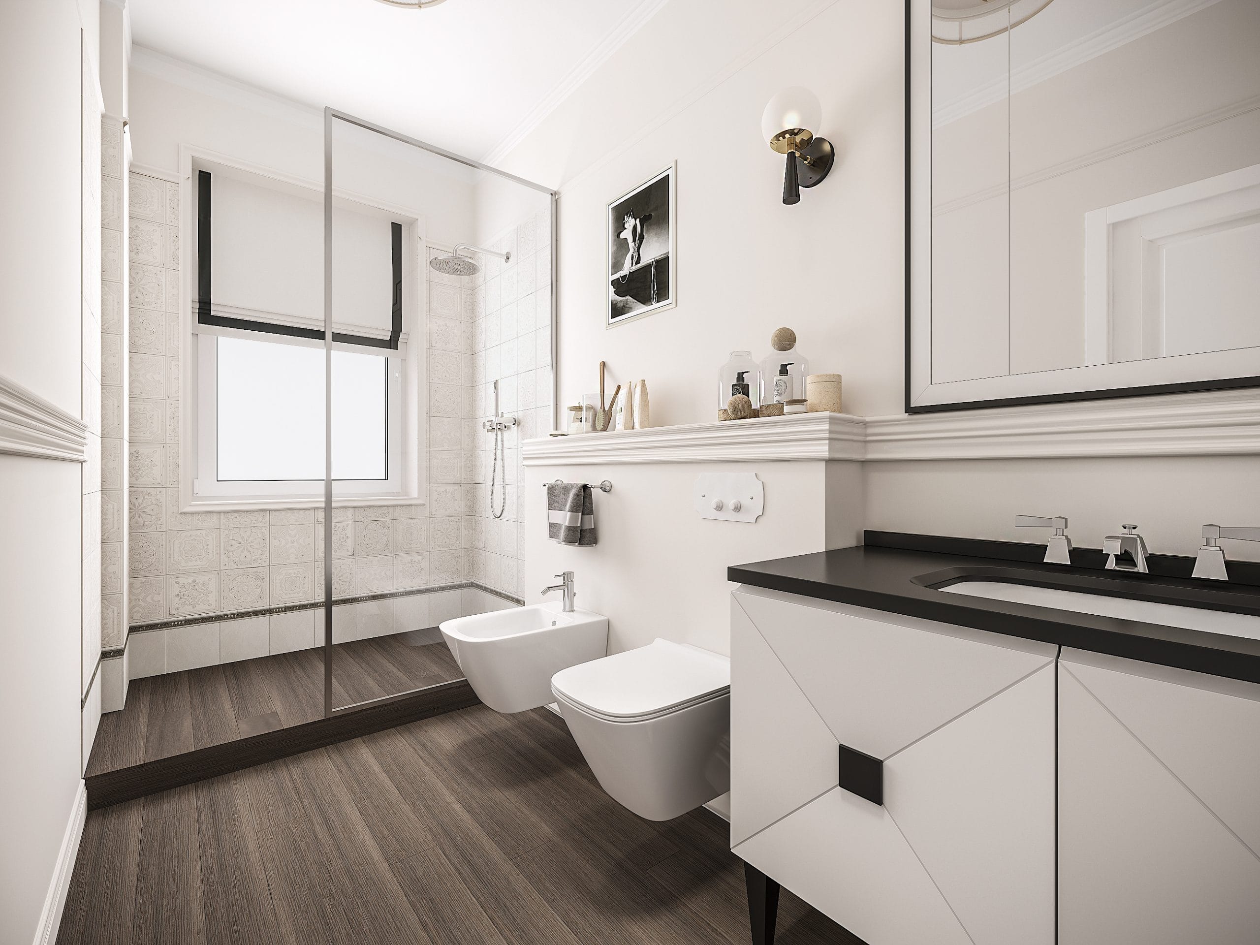 A dark interior could be cozy too – here most of the shades are deep and characteristic – dark furniture, dark walls in some places, dark cabinets, and lamps. Expressive texture, a set of refined details. A stylish interior with powerful colors and high contrasts, but a comfortable, homey atmosphere.